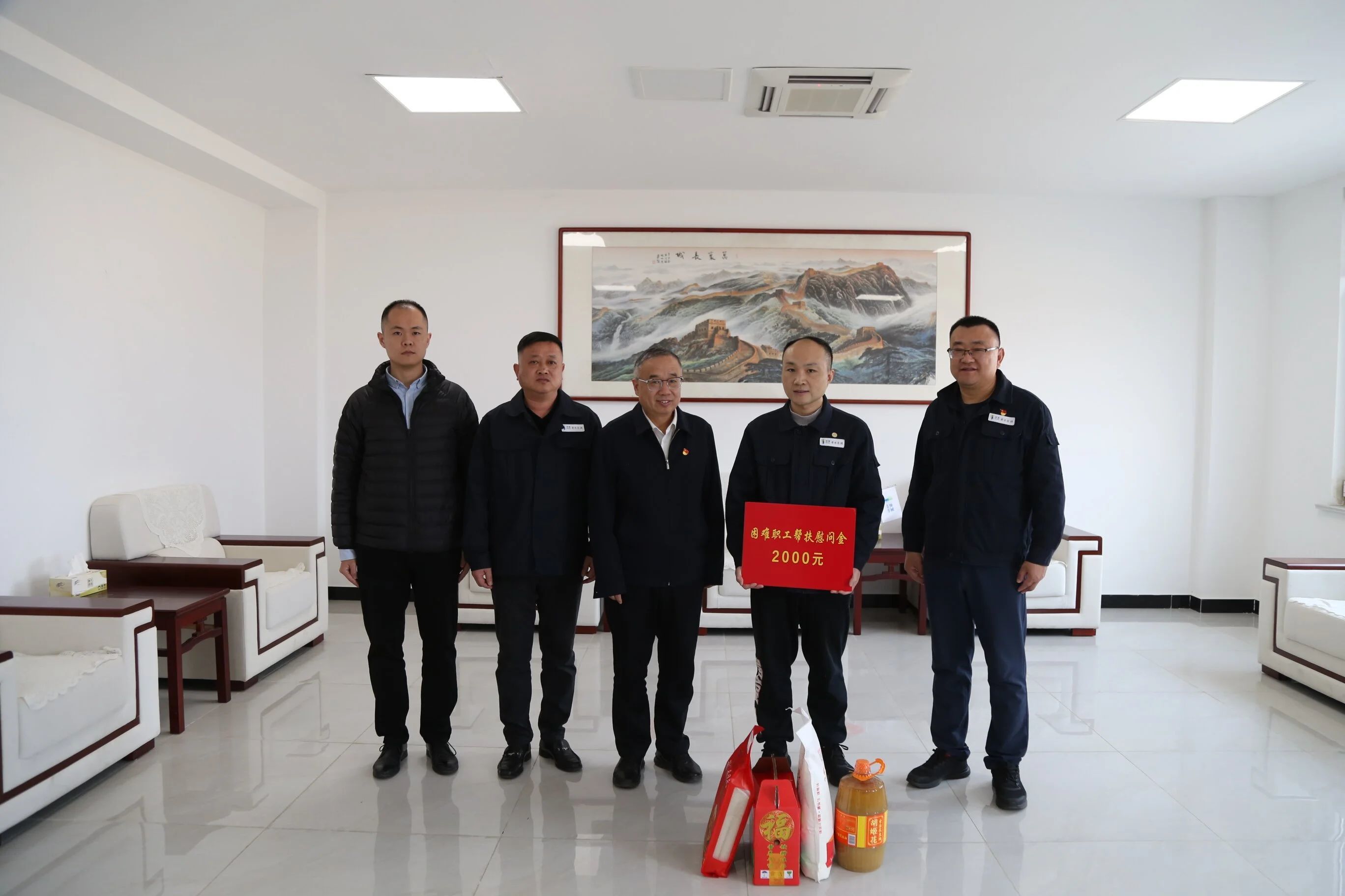 “目前工作生活上有什么困難?家里父母身體怎么樣?要提振信心積極面對,把日子過好?!本渚涫巧睢⒆肿纸躁P(guān)心。慰問組與困難職工親切交談,詳細詢問當前生活和工作情況,鼓勵職工保持樂觀向上的心態(tài),積極面對生活中的困難,并為職工送上米、面、油等慰問品和慰問金,送上新春祝福。