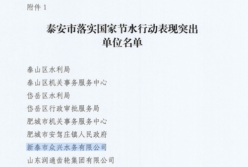 近日,新泰市眾興水務(wù)有限公司在落實(shí)國家節(jié)水行動(dòng)和化工園區(qū)供水業(yè)務(wù)中表現(xiàn)突出,榮獲兩項(xiàng)榮譽(yù)稱號。