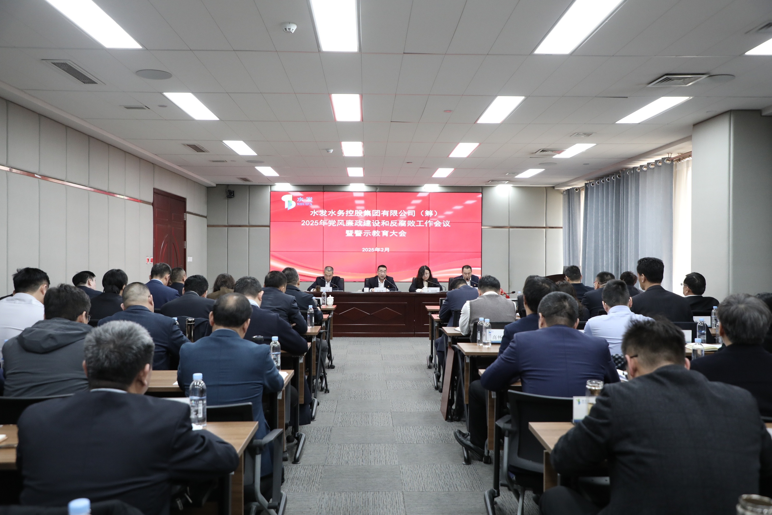 2月21日,水發(fā)水控集團召開2025年黨風廉政建設和反腐敗工作會議暨警示教育大會。水發(fā)集團紀委紀律檢查一室主任司美紅到會指導,水發(fā)水控集團黨委書記、董事長王忠華出席會議并講話,黨委副書記、副總經理(主持經理層工作)晉學明主持會議。