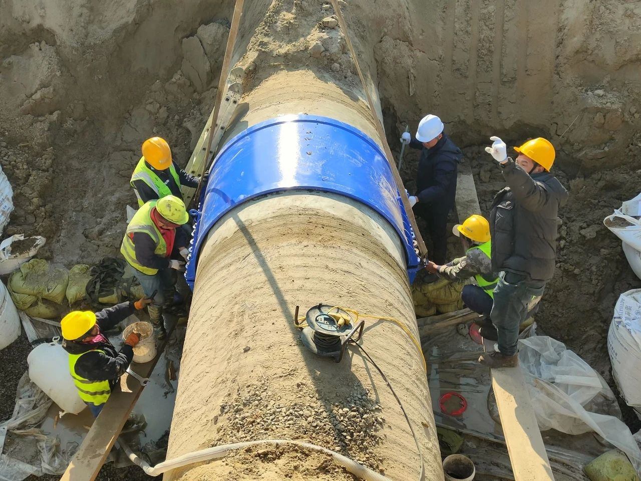 情況緊急,發(fā)現(xiàn)漏水后,工程管理部搶修人員以最快的速度奔赴現(xiàn)場,仔細(xì)檢查上下游閥門,憑借豐富經(jīng)驗和專業(yè)技術(shù),初步鎖定管線破損的位置與深度??蛻舴?wù)部第一時間將漏水情況向建設(shè)交通局報告,并積極協(xié)調(diào)現(xiàn)場開挖工作,爭分奪秒推動搶修進程。與此同時,供水調(diào)度中心發(fā)揮著“智慧大腦”的作用,迅速調(diào)配惠澤水廠對第一、第三供水管線進行精細(xì)調(diào)節(jié),精準(zhǔn)關(guān)閉第四供水管線破損位置的上下游閥門,一場保障居民用水不受影響的“戰(zhàn)役”就此打響。 搶修人員先對管體保護層進行打磨,如同給受傷的“血管”清創(chuàng),再均勻地涂抹上搶修劑修補創(chuàng)口,最后用定制的哈夫節(jié)緊緊包裹。完成修復(fù)后,在管底鋪上厚厚的碎石墊層,給管道安上了一個穩(wěn)固的“床墊”,確保其在注水后穩(wěn)穩(wěn)當(dāng)當(dāng),不會沉降。這種方法相較于傳統(tǒng)的拔管、換管方式,不僅降低了成本,還大幅縮短了工期,為盡快恢復(fù)供水爭取了寶貴時間。 搶修人員全力以赴,輪流作業(yè),經(jīng)過近30個小時的連續(xù)奮戰(zhàn),終于完成修復(fù),管道再次流淌著清澈的水流,用戶的用水需求得到了堅實保障。 參與搶修的每一位員工都是守護用水安全的衛(wèi)士,他們用行動詮釋著水發(fā)人的擔(dān)當(dāng)精神,也收獲了廣大用戶的高度認(rèn)可。下一步,供水集團將不斷提升服務(wù)質(zhì)量,為濱海區(qū)企業(yè)、居民用水保駕護航。