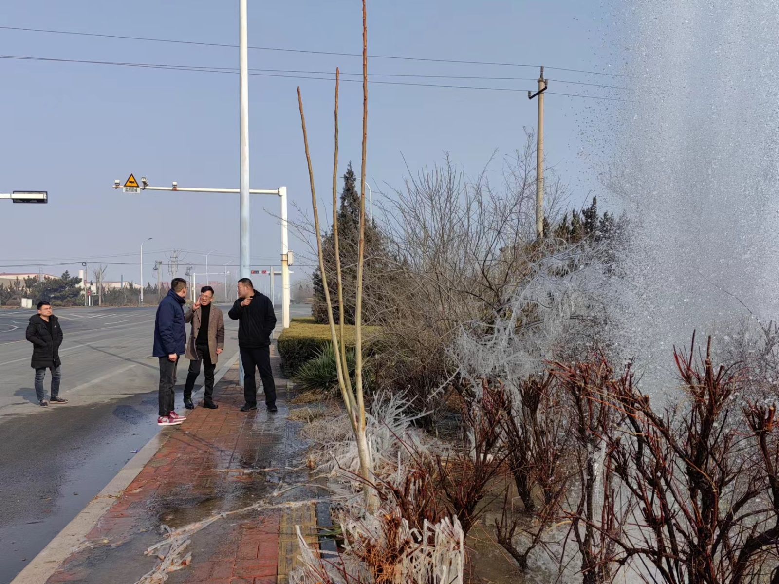 甲辰龍年大年初一早7點(diǎn),正當(dāng)大家沉浸在濃厚的春節(jié)節(jié)日氣氛中,濰坊供水集團(tuán)值班熱線接到群眾報(bào)修電話,發(fā)現(xiàn)供水管道疑似破裂漏水,附近200多家企業(yè)和1000多戶居民用水受到嚴(yán)重影響,供水集團(tuán)立即啟動(dòng)供水突發(fā)事件應(yīng)急預(yù)案,值班領(lǐng)導(dǎo)張明興、杜鑫組織客戶服務(wù)部、工程管理部、惠澤水廠等維修工作人員組成搶修隊(duì),第一時(shí)間趕赴現(xiàn)場,根據(jù)現(xiàn)場情況制定搶修方案,全力展開管道搶修。